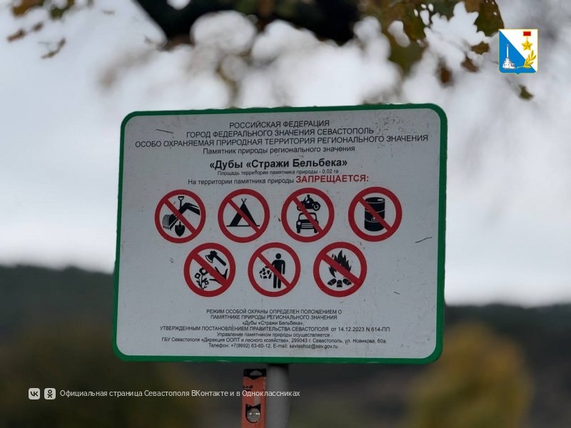 Специалисты севприроднадзора установили 45 информационных знаков по границам заказников «Мыс Фиолент» и «Караньский», памятников природы «Ушакова балка», «Фисташки у бухты Круглая», «Озерные дубы» и других. Знаки предупреждают посетителей, что они заходят на заповедную землю. Здесь строго запрещено разводить костры, ставить палатки, передвигаться на машине и вредить растениям. На связи в MAX