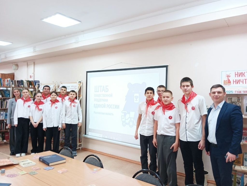 На базе первичного отделения межпоселенческой центральной библиотеки состоялась встреча молодёжи с помощником депутата от партии «Единая Россия» Евгением Гладковым. Центральным событием стала тематическая настольная игра «Диалог нации», призванная укрепить гражданскую идентичность и межнациональное согласие. В ходе игры участники прошли четыре этапа, отвечая на вопросы викторины из разных областей: истории, культуры, географии, конституционных принципов, а также темы, посвящённые подвигу многонационального народа и современной жизни России. Ребята познакомились с традициями, кухней, праздниками и уникальными историями 32 народов страны. Евгений Гладков, обращаясь к подросткам, подчеркнул особую значимость единства и дружбы в современном мире.