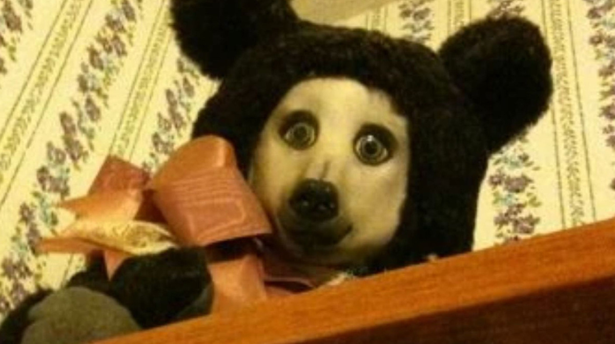 - Объект. Тедди был реальной игрушкой. Скорее всего, той самой неудачной подделкой Чебурашки с невыразительными, слишком реалистичными глазами. Её изначально неприятная внешность стала спусковым крючком для всей последующей истории.