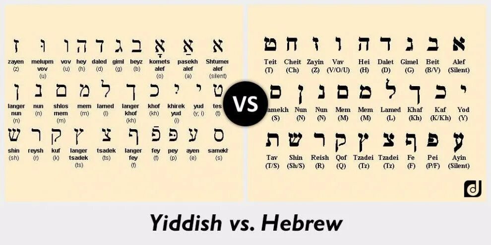 Иногда в документах, которые мы получаем из архивов на родственников наших клиентов, можно встретить интригующую строчку: «родной язык – еврейский». Мы знаем, что сейчас официальным языком Государства Израиль является иврит – семитский язык со своим алфавитом, письмом справа налево и отсутствием обозначения гласных звуков на письме. Однако предки наших клиентов совершенно не это имели в виду, записывая в автобиографии «еврейский». Так же, как и современная израильская кухня разочаровывает и поражает репатриантов, пришедших за рыбными шариками и форшмаком своей бабушки в еврейский ресторан и получивших вместо них шакшуку и фалафель, современный язык Израиля очень сильно отличается от тех, на которых говорили евреи, жившие по всему миру до появления Государства Израиль. Евреи России и СНГ происходят в абсолютном большинстве от ашкеназских евреев – тех, которые жили на территории Центральной и Восточной Европы (в Германии, Польше, Российской империи и т.д.). Их языком был идиш – германск