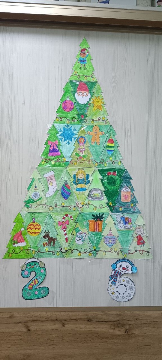 Наша ёлочка ▫️▫️ ▫️▫️ ▫️▫️ ▫️▫️ 💡💡💡💡💡💡💡💡💡 Завтра по плану надо звезду зажечь.⭐️ Две цифры года кто-то из ребят домой утащил 😂. Завтра принесут, Я надеюсь. Ну или новые сделаем 🤓