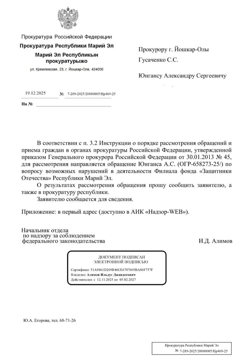 действий. Соответственно не имеют пенсий, льгот и выплат, положенных от государства. Также были лишены положенных льгот члены их семей. Считаю, что данная ситуация стала возможной исключительно из-за неправомерной деятельности сотрудников филиала фонда "Защитники Отечества" в республике Марий Эл. Ими были искусственно созданы ненужные бюрократические барьеры, выдуманы схемы затягивания процессов оформления элементарных документов, созданы и переданы в параллельные гос структуры "черные списки" бойцов ЧВК Вагнер, по которым искусственно тормозились все процессы получения льгот и выплат. За счёт "сэкономленных" на ветеранах средств, фонд безбедно существует более двух лет. В настоящее время прокуратура начала масштабную проверку финансовой деятельности филиала фонда в Марий Эл.