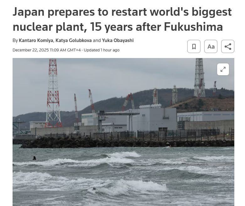 Yaponiya Fukusima AESdagi avariyadan qariyb 15 yil o‘tib, dunyodagi eng yirik atom elektr stansiyasini qayta ishga tushirishga tayyorlanmoqda — Reuters