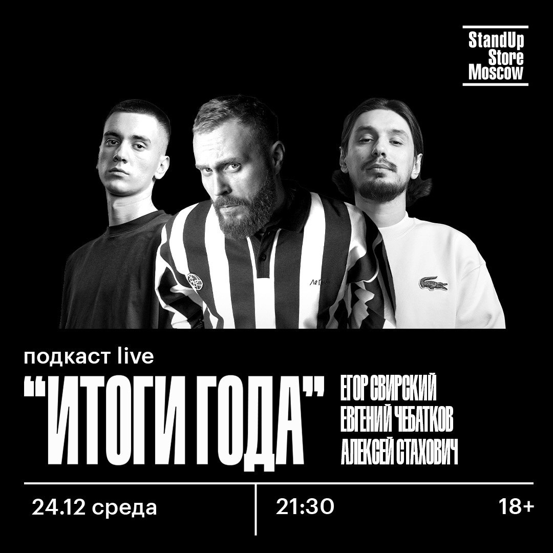 В 21:30 Подкаст live "Итоги года" с Егором Свирским, Евгением Чебатковым и Алексеем Стаховичем Купить билеты 📍Наш адрес: ул. Петровка д. 21, StandUp Store Moscow