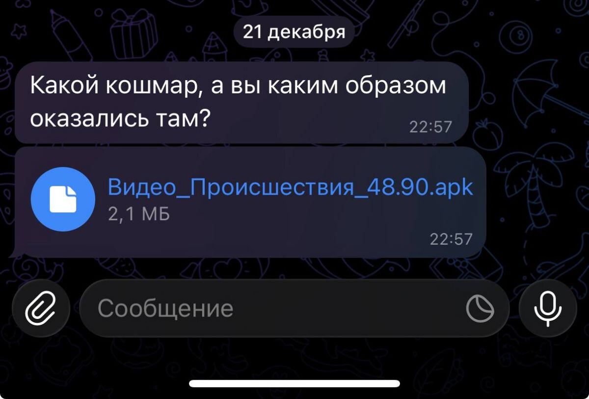 Злоумышленники взламывают чужие аккаунты в мессенджерах и соцсетях, чтобы отправить с них сообщения с опасным файлом в формате —.apk. СМС сопровождается провокационными вопросами: «Это ты на видео?» или «Смотри, там на фото ты!» или «Какой кошмар, а вы каким образом оказались там?». Ничего не подозревающая жертва думает, что пришла фотография и открывает ее. В этот момент вредоносный файл считывает уведомления и автоматически пересылает опасный файл всем контактам пользователя. Так мошенники пытаются получить доступ к платежным данным и использовать личную информацию в преступных целях.