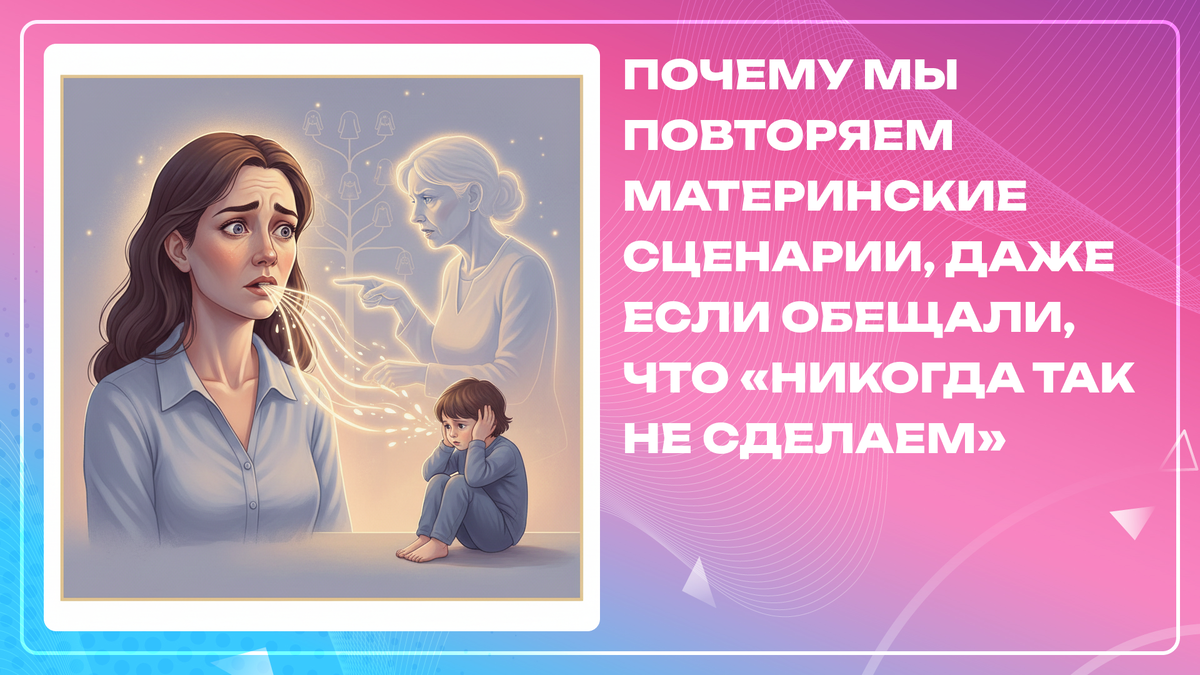 Но проходит время, наступают стресс, усталость, материнство — и вдруг в поведении, в голосе, в реакциях начинает звучать мама. То, от чего хотелось уйти, незаметно оказывается внутри. Почему так происходит — и можно ли это изменить? Сценарий — это не то, что мы выбираем сознательно.