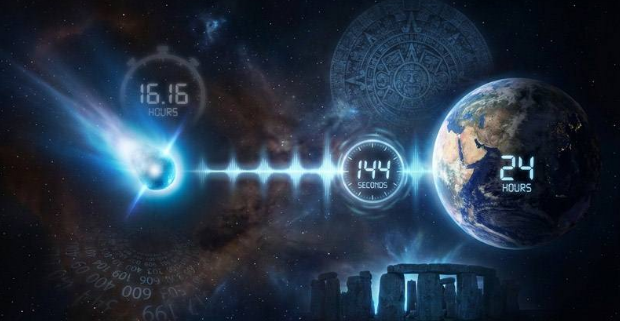 Увлекательное начинается при вычислении значения этого отрезка: одна двадцать пятая часа (3600 секунд, разделённых на 25) даёт ровно 144 секунды. Коллинз указывает, что это не случайная цифра, потому что при применении её к Земле синхрония оказывается полной. Наши 24-часовые сутки содержат ровно 600 отрезков по 144 секунды. Таким образом, комета и Земля, кажется, «танцуют» в математической пропорции 404:600.