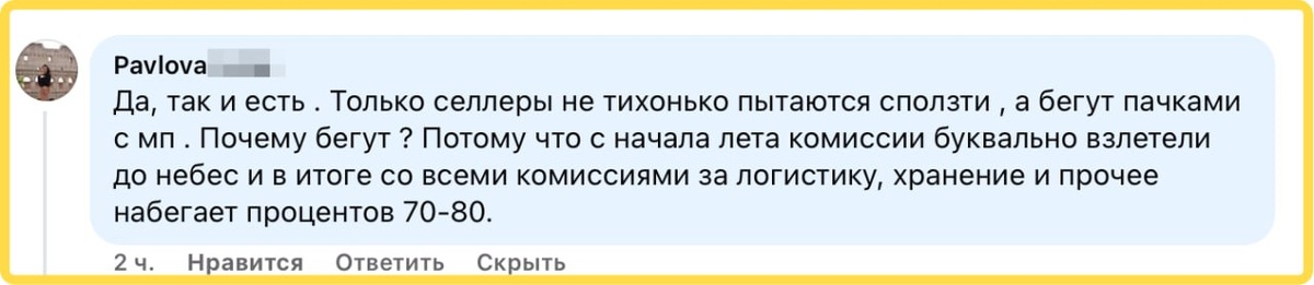 Пишут, что селлеры бегут с МП... Да и пофигу. Новые придут (я про селлеров). Все будет в цене товара. А людям насколько стало удобно покупать на МП, что они и это переварят. Возврат без проблем, ПВЗ в соседней парадной, что еще надо?