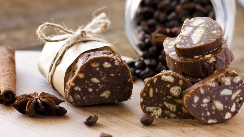 История советского лакомства Сладкая колбаса — один из самых узнаваемых и любимых десертов советской эпохи. Это лакомство появилось не в кондитерских цехах, а на домашних кухнях в 60-70-х годах, когда в магазинах был дефицит настоящих конфет и шоколада. Хозяйки проявили изобретательность, создавая из доступных продуктов десерт, который по форме напоминал колбасу, но был сладким. Интересный факт: в разных республиках СССР рецепт немного отличался. В Прибалтике чаще добавляли клюкву или бруснику, на Украине — грецкие орехи, в России — курагу. Но основа всегда была одинаковой: печенье, масло, какао и сахар. Классический рецепт «как в детстве» Ингредиенты: · Печенье «Юбилейное» или «К кофе» — 300 г · Сливочное масло — 150 г · Сахарная пудра — ½ стакана · Какао-порошок — 3 ст. ложки · Молоко — 4-5 ст. ложек · Орехи грецкие — 50 г (по желанию) · Изюм или курага — 50 г (по желанию) Пошаговое приготовление: 1. Подготовка основы Печенье поломать на куски и измельчить в крошку. Можно