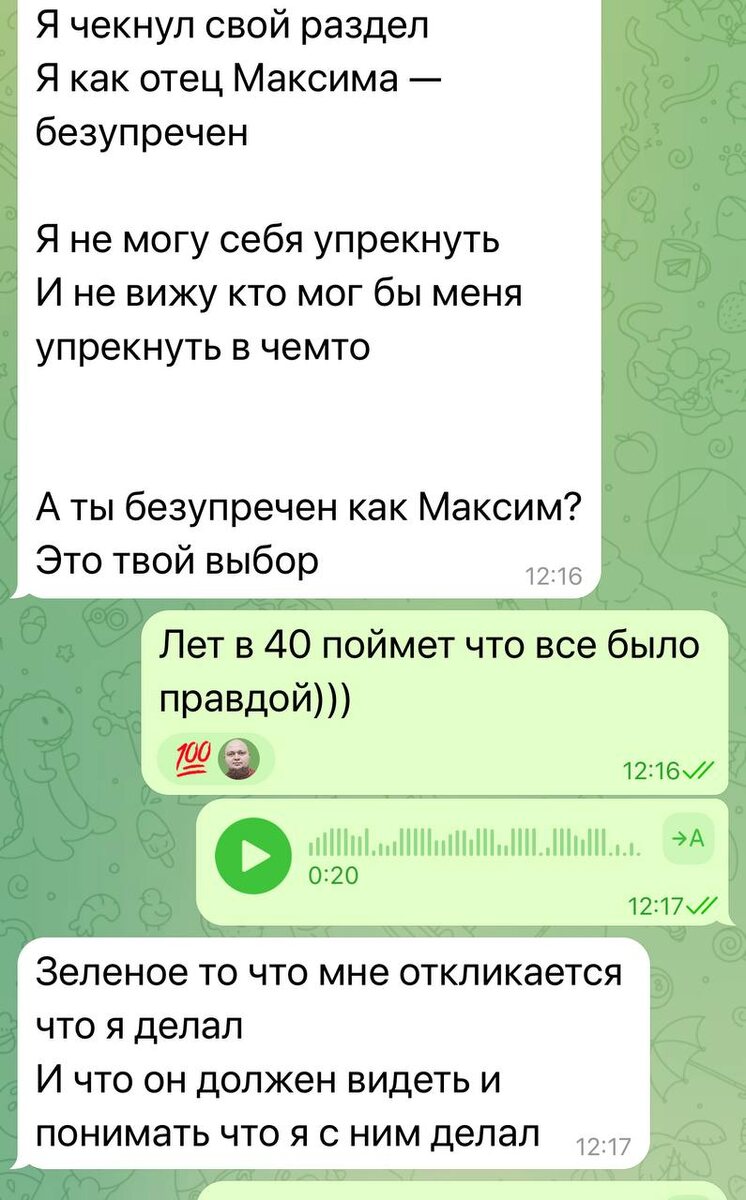Он многодетный батя, как и я. Честно - ждал его реакции, ибо он любит меня покритиковать по-братски. Вот переписка у нас какая вышла: