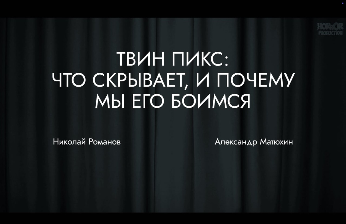 "! В этой лекции писатели Николай Романов и Александр Матюхин расскажут вам как стоит смотреть Твин Пикс и почему он все еще является страшным. Приятного просмотра! YouTube | VK | RuTube
