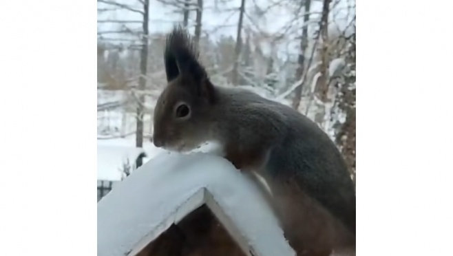Белки в Ботаническом саду Йошкар-Олы полюбили есть снег