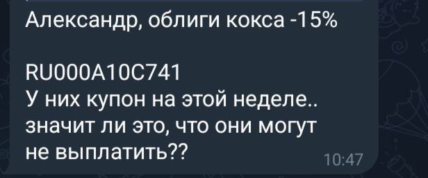 👆 #вопросподписчика Падение цен ничего не говорит о событиях в будущем, а означает лишь то, что участники рынка усомнились в платежеспособности эмитента. По последней отчетности МСФО за 2 квартал 2025 г. у горно-металлургического холдинга "Кокс" капитал 27,5 млрд руб, чистый долг 80,9 млрд руб, полугодовой убыток 9,6 млрд руб, околонулевая операционная прибыль при процентных расходах за полгода 11 млрд руб. Всего выпущено 5 выпусков облигаций на общую сумму 4,8 млрд руб. Доля облигаций в займах - 5,7%. Остальное - банковские кредиты. Оферт и погашений облигаций до лета 2026 года нет. Дата ближайшего купона по 4 выпуску - 26.12.2025 г. Размер купона - 25,89 млн руб. Доходность облигаций к погашению - 40-65% годовых. Судя по всему, рынок смотрит на платежеспособность Кокса скептически. Выводы: баланс и размеры бизнеса Кокса позволяют спокойно справиться с выплатой купонов, при необходимости перекредитовавшись в банках. Возможен ли дефолт? В принципе в этом мире возможно все, даже
