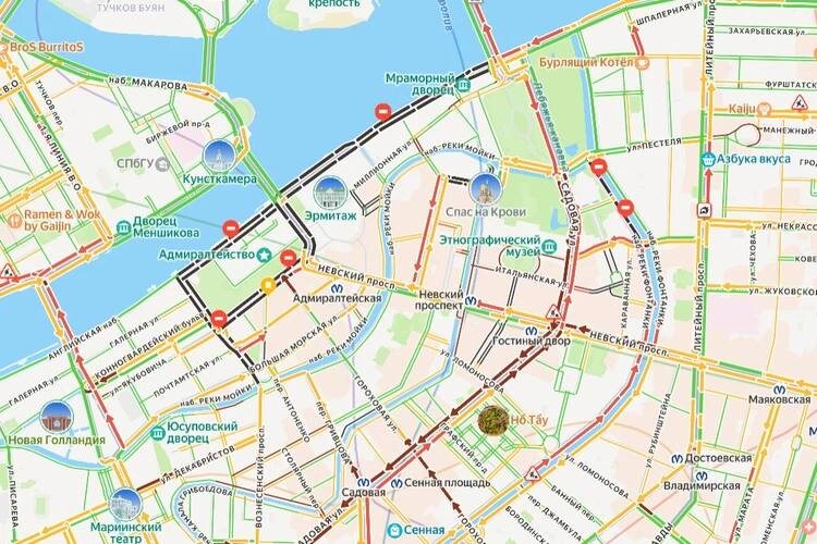 По данным сервиса «Яндекс.Пробки», самой загруженной магистралью утром стала Садовая улица, где образовались заторы в обе стороны от Мойки до Крюкова канала. Плотное движение наблюдается на подъездах к ней по Невскому проспекту, на набережных Фонтанки и канала Грибоедова, а также на Гороховой улице и улице Труда. На картах отмечены масштабные перекрытия в районе Адмиралтейства и Дворцовой набережной. Перекрыт улицы вокруг Адмиралтейства, Исаакиевского собора и набережные до Троицкого моста. Пробки сформировались и на ключевых вылетных магистралях. Южные развязки КАД стоят, хотя час пик давно закончился. В бордовые цвета окрасились и улицы в Московском районе. Небольшой затор также собрался перед съездом на Благодатную улицу в южном направлении. Читай нас в MAX! | Подпишись на Комсомольскую правду: СПб