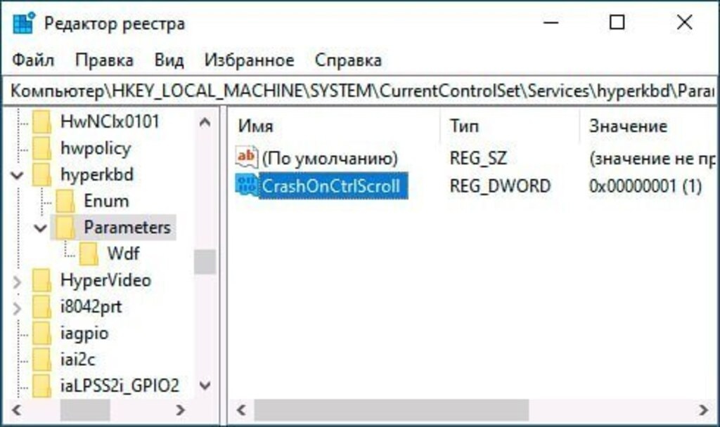 - 1 → функция включена (можно вызвать BSOD комбинацией Ctrl (правый) + Scroll Lock дважды).