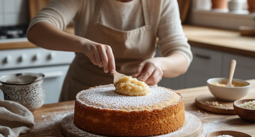 Кто из нас не мечтал о идеальном маннике — влажном, нежном, с аппетитной прослойкой повидла, которая не опускается на дно? Знакомая картина: стараешься, печёшь, а начинка предательски скапливается внизу, превращая кулинарную мечту в разочарование. Но есть способ раз и навсегда решить эту проблему! Секрет в особой технике сборки пирога — она гарантирует, что повидло распределится ровно посередине, создавая безупречный срез. А рецепт при этом остаётся простым и понятным: никаких весов, только обычный стакан на 250 мл. Для начала соберём ингредиенты. Понадобится: стакан кефира, стакан манной крупы, стакан пшеничной муки, два яйца, полстакана сахара (около 100 г), полстакана растительного масла (тоже около 100 г), 200–300 г повидла (лучше с кислинкой — сливовое или яблочное), чайная ложка разрыхлителя, пакетик ванильного сахара и треть чайной ложки соли. Процесс начинается с замешивания теста. В миску вливаем кефир, разбиваем яйца, добавляем сахар и ванильный сахар, тщательно перемешиваем.