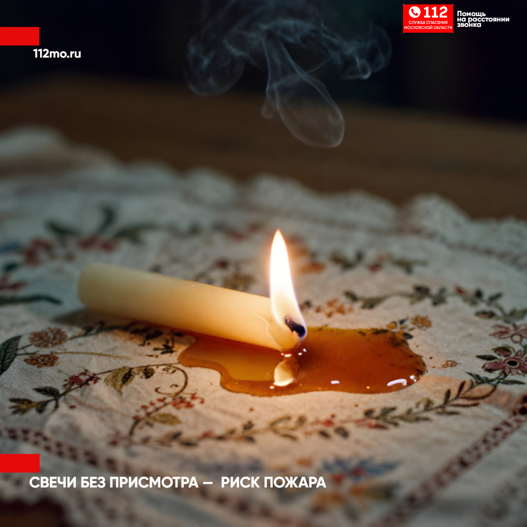 Операторы Системы-112 Московской области регулярно принимают вызовы о возгораниях, начавшихся из-за оставленных без присмотра свечей. Чаще всего огонь перекидывается на шторы, ёлки, мебель и элементы декора — и за считанные минуты небольшое пламя превращается в серьёзную угрозу для жизни и имущества. Основные правила безопасного использования свечей: - Не оставляйте свечи без присмотра Даже на короткое время. Поток воздуха, домашние животные или случайное движение могут привести к возгоранию. - Размещайте свечи вдали от горючих предметов Держите их подальше от ёлок, гирлянд, штор, скатертей, бумаги и декора. Минимальное расстояние — не менее 50 см. - Используйте устойчивые и негорючие подсвечники Подсвечник должен быть из металла, стекла или керамики и надёжно фиксировать свечу, чтобы она не опрокинулась. - Ставьте свечи на ровную и устойчивую поверхность Не размещайте их на краю стола, полки или подоконника, особенно рядом с окнами и источниками сквозняков. - Берегите от детей и живот