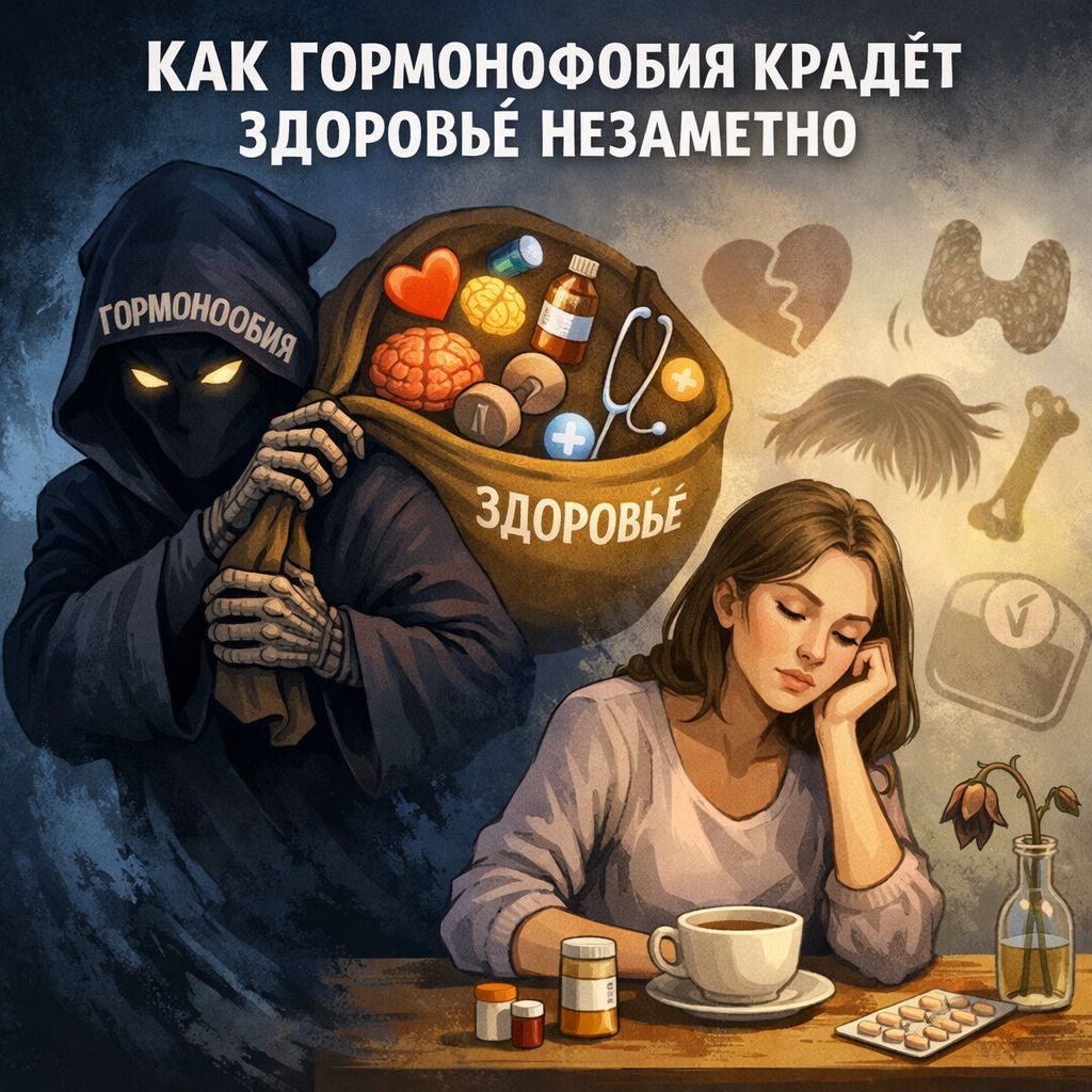 Организм редко сдаётся сразу. И человек - тоже. Чаще он годами адаптируется: привыкает к усталости, снижению энергии, «не той» голове, ухудшению сна и настроения. А рядом с этим почти всегда живёт ещё один тихий фактор - гормонофобия. Она редко звучит вслух. Чаще - в виде внутренних сомнений: «А вдруг станет хуже», «А вдруг привыкну», «А вдруг вырастут усы / выпадут волосы / будет рак». Парадокс в том, что эти страхи живут не только у пациентов. Очень часто они транслируются из профессиональной среды - людьми, которые должны опираться на физиологию и данные, но вместо этого опираются на мифы. А дальше начинается знакомый сценарий. Годы ожидания. Отказ от терапии «на всякий случай». И постепенная потеря качества жизни - без резкого обрыва, без катастрофы, просто по чуть-чуть. Потому что в реальной жизни идеальных решений без цены не существует. Волшебной таблетки без последствий - тоже. Любой выбор - это компромисс. Вопрос только в том, чем именно вы готовы заплатить: контролируемыми р