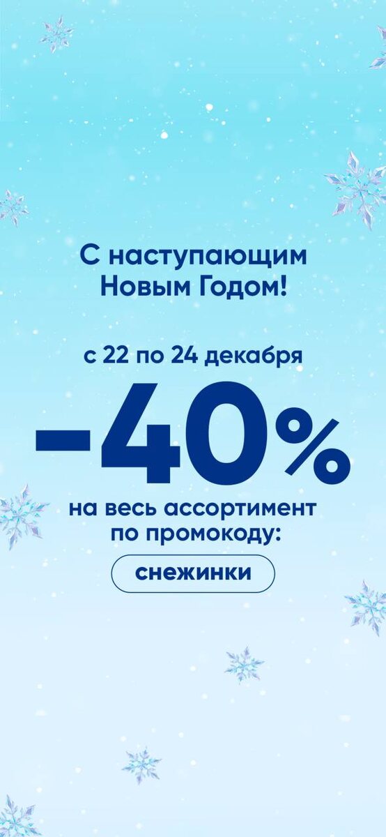 ! ❄️ Спасибо, что выбираете японский уход вместе с нами! Дарим вам новогодний бонус - промокод СНЕЖИНКИ, который даст скидку 40% на весь ассортимент shop.japonica.ru*, - чтобы конец декабря стал еще приятнее ♥️ *промокод действует с 22.12 по 24.12, не распространяется на товары из категории Прочее