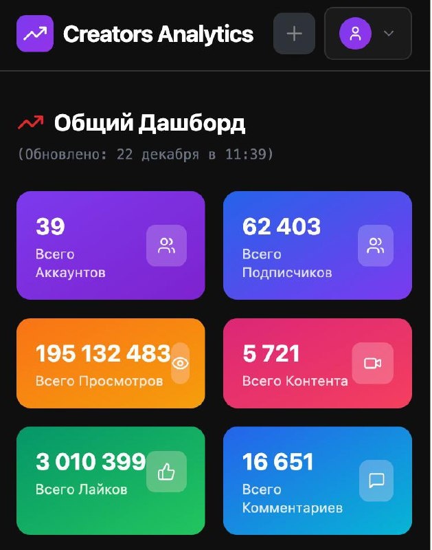 Достигли почти 200 млн просмотров на вертикальном контенте, переходим на горизонтальный. Заодно тестируем свой сервис аналитики по сбору данных на видео. Кому интересн сервис аналитики каналов и видео В ютуб тикток нельзяграм и вк, поставьте плюсик. С 5700 видео собираем данные за 30 секунд. Напишите сколько бы вы готовы платить за такую аналитику?