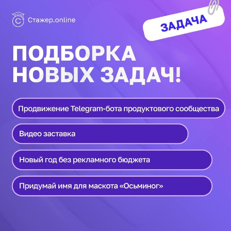 ! 🎨Новая порция интересных заданий подъехала! Если тебе хочется делать не абстрактные задания, а реальные проекты для компаний, которые потом можно добавить в портфолио — эти задачи именно для тебя. 💜 Продвижение Telegram-бота продуктового сообщества «Немного продакт» «Немного продакт» - продуктовое сообщество с активной аудиторией продакт-менеджеров, дизайнеров и IT-специалистов. Есть Telegram-бот @nemnogoproduct_official_bot, через который предоставляются платные и бесплатные услуги. ‼️ Нужно: Придумать нестандартные способы продвижения бота и его услуг, выходящие за рамки банальных рекламных постов и прямых продаж. ➡️ Подробности тут 💜 Создай необычную видеозаставку для «Клубничных пиратов» Клубничные пираты - проффесиональное сообщество фермеров России! Они рассказывают и показывают, как выращиваются ягоды, а также продают их. 👨💻Что нужно сделать: Необходимо создать видео заставку для антиконференции посвящённой выращиванию клубники и других ягодных культур. Заставка дли