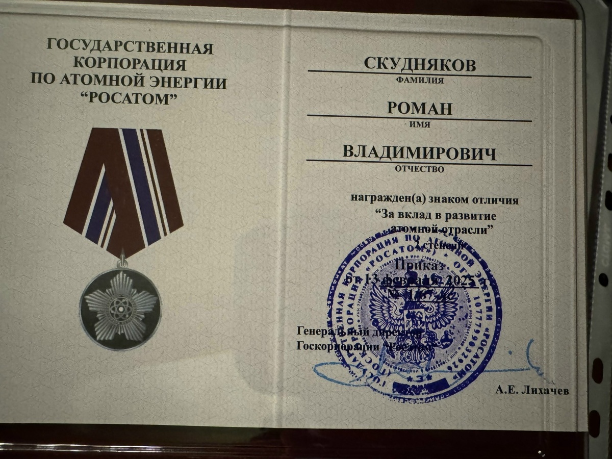 Нижегородец Роман Скудняков отмечен за вклад в развитие атомной отрасли