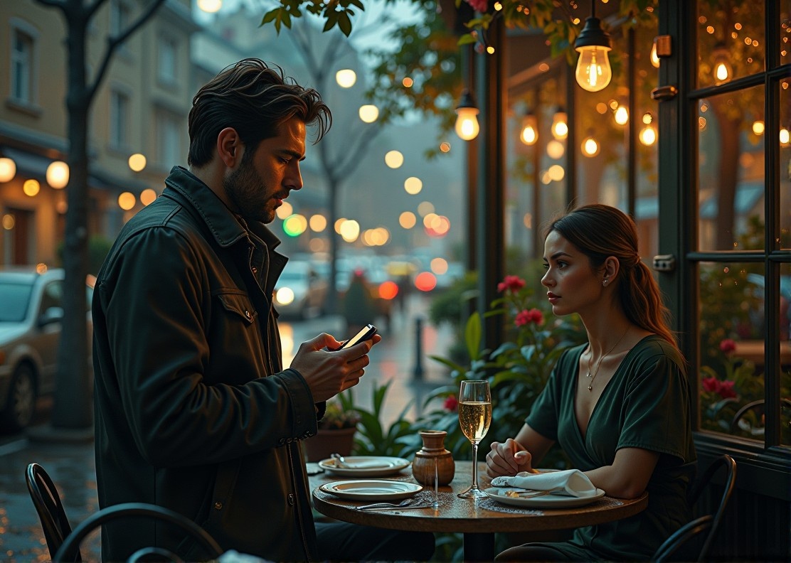 В 19:43 в ресторан вошёл мужчина. Высокий, в сером пальто, с аккуратной стрижкой. Он не был молодым мальчиком-искушением, каким рисует ревность. Он выглядел… обычным. И от этого стало хуже: значит, это не кино, а жизнь.