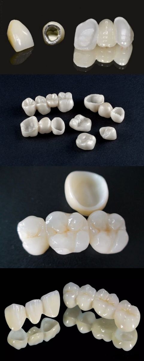 В стоматологии её режут на фрезерном станке с компьютерной точностью 0,1 мм, потом обжигают при 1 500 °C и получают «каркас» — белый, но непрозрачный. Сверху на него наносят фарфоровую облицовку, и вуаля — коронка, которая выглядит как живой зуб, но не ломается о косточки в случае монолитной конструкции.