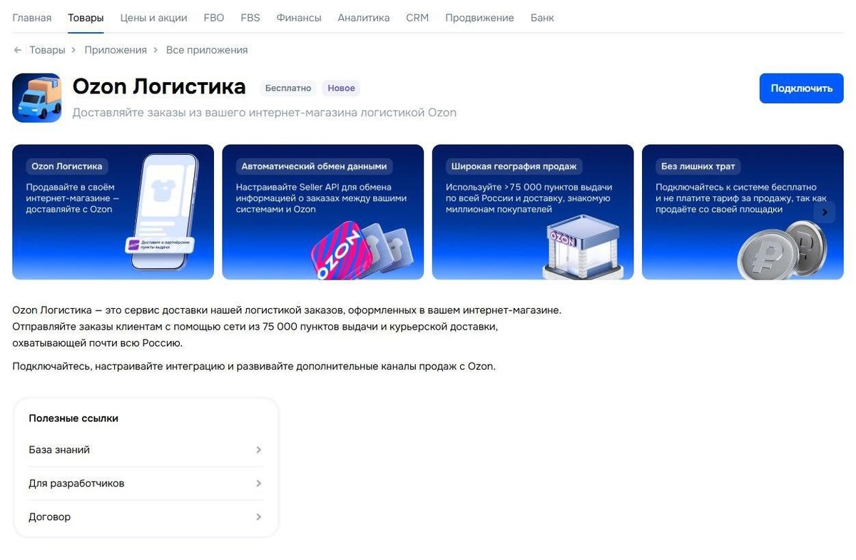 🔹 Ozon Логистика доступна для подключения к сторонним магазинам