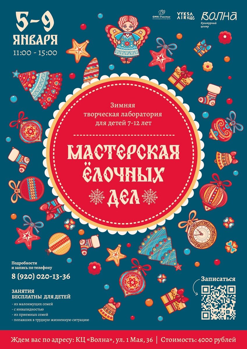 » ❄️ Зима без снега – словно новогодние каникулы без волшебства. 🌊 Культурный центр «Волна» приглашает детей от 7 до 12 лет на зимнюю творческую лабораторию, посвященную самым волшебным символам Нового года — ёлочным игрушкам. ➡️ 5-9 января с 11:00 до 15:00 вместе с преподавателями участники не просто будут создавать ёлочные украшения, а отправятся в захватывающее путешествие во времени. ➡️ Узнаем, чем украшали ёлки наши бабушки и дедушки, раскроем секреты старинных мастеров, а еще: ✅ побываем на интересной экскурсии в музее ✅ поиграем в зимние игры ✅ создадим авторские ёлочные игрушки, которые не встретишь больше нигде! И, конечно, это классная возможность завести новых друзей и получить массу позитивных эмоций. Ведущие лаборатории: ➡️ Екатерина Стрельцова и Елена Гуленкина, которые увлекут ребят в мир творчества и помогут раскрыть их таланты в мастерстве ёлочных дел. ✹ Стоимость участия: 4000 ₽ ✹ Регистрация по ссылке — clck.ru/3QcPok ✹ Подробная информация по телефону: +7