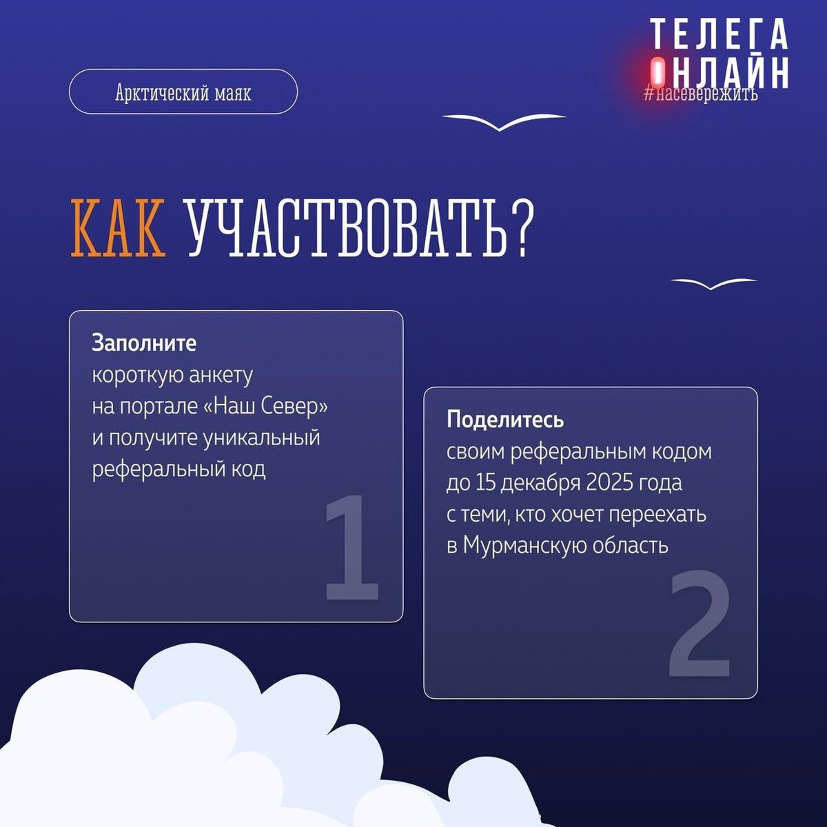 Губернатор Мурманской области Чибис рассказал о расширении 1 января 2026 года программы «Арктический маяк». Теперь жители смогут получить 51 тыс. рублей за приглашение друзей и знакомых переселиться в регион, вне зависимости от возраста переезжающих. Раньше бонус был доступен только за приглашение молодежи до 35 лет. Маркетологи добрались до вопросов внутренней миграции населения. 🚲 Подпишись на Телега Online