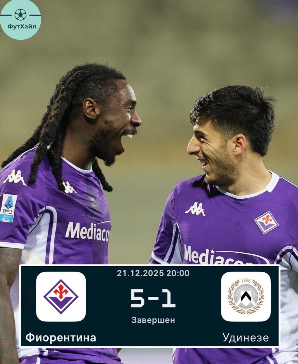 !!! Офигеть, впервые в сезоне, спустя 15 матчей со старта Фиорентина добыла первую победу, да еще и такую мощную Еще одна победа и вообще из зоны вылета поднимутся, при условии осечки соперников конечно😀 ➡️ Подписаться на ФутХайп