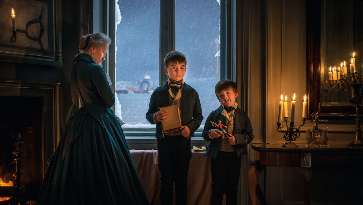 На следующий день к особняку подкатила скромная карета. Из нее неуверенно вышли два мальчика в темных пальтишках. Старший держал младшего за руку и оглядывался с любопытством.