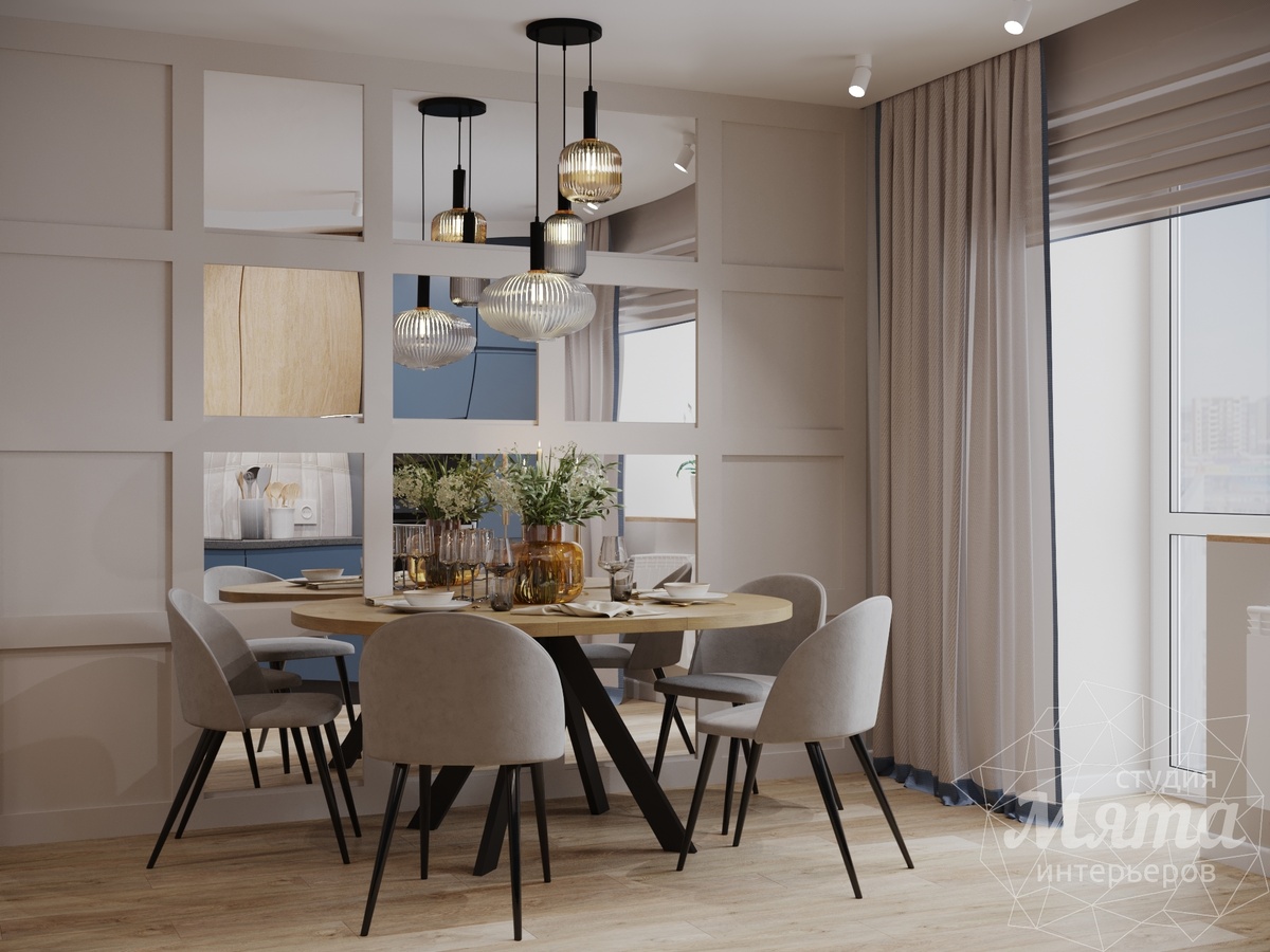 Этот дизайн проект был разработан для молодой семьи из Москвы. Чтобы у каждого была своя зона комфорта, немного изменили планировку и "перезагрузили" пространство. Так в квартире появилась гардеробная, а в гостиной, по желанию хозяев, предусмотрели рабочую зону и спальное место для родителей. Детям досталось по целой небольшой, но очень особенной комнате. Зеркальные вставки на стене в кухне стали настоящим украшением интерьера. Они не только визуально расширяют пространство, наполняя его светом, но и добавляют глубину. Отражения в зеркалах оживляют интерьер, удваивая количество деталей — от изящных светильников до элементов сервировки стола. Простота форм, светлая палитра, безупречная функциональность, благородство натурального дерева — всё это создаёт узнаваемый скандинавский характер пространств. В гостиной центром композиции служит диван, в скандинавском стиле, вдоль угловой стены расположена рабочая зона на два стола с хранением. За диваном, разместили двуспальную кровать с тумб