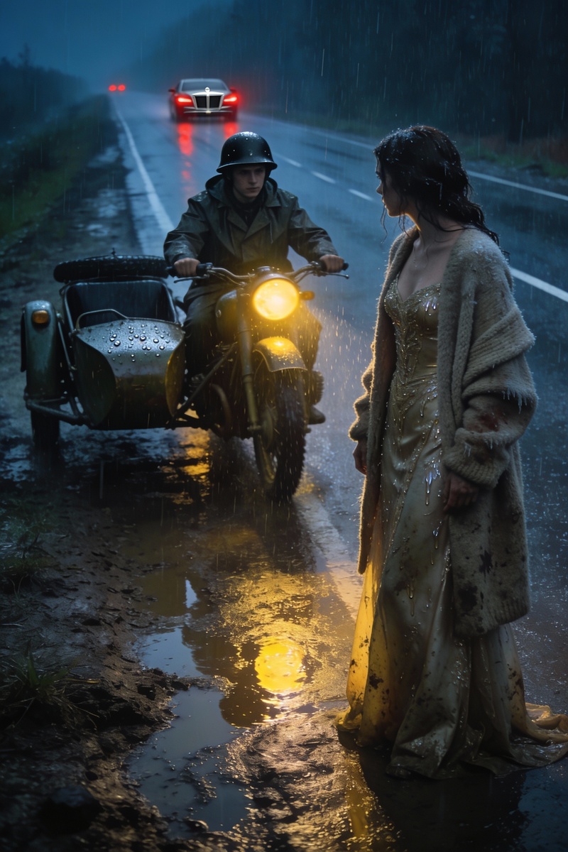 Мотоцикл тронулся, и они медленно покатили сквозь стену дождя. Оля смотрела на широкую спину своего спасителя, обтянутую дешевым дождевиком, и впервые за этот вечер почувствовала, что, возможно, она не умрет.