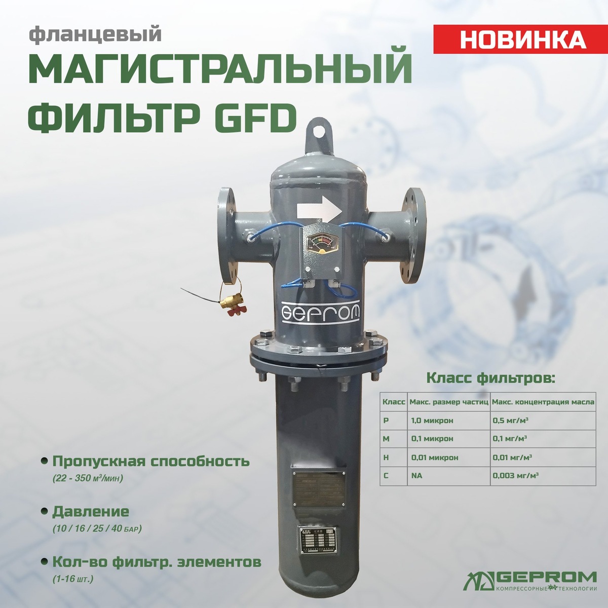 Представляем новые фланцевые фильтры серии GFD — идеальное решение для промышленных пневмосистем. 🔥 Ключевые преимущества: - Эффективность: Глубокая очистка от масла, твердых частиц и микроорганизмов. Разные степени фильтрации под любую задачу. - Надёжность: Прочная конструкция из качественных материалов рассчитана на высокое давление и постоянные нагрузки. - Фланцевое соединение: Идеально для магистралей большого диаметра. Простота монтажа, герметичность, минимальные потери давления. - Экономичность: Долгий срок службы и доступные цены на сменные картриджи. Обеспечьте своё производство чистым сжатым воздухом! Это гарантия долговечности оборудования и стабильного качества продукции. 👉 Заказывайте на сайте: https://geprom.ru/katalog/podgotovka_szhatogo_vozdukha/flantsevye_magistralnye_filtry_gfd/ 🏭 "Geprom" Компрессорные технологии 🌍 Site: geprom.ru 🌐 Tg: https://dzen.ru/id/64b64e626e39c84dad51a16c