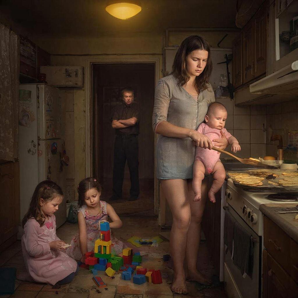 Я стояла у плиты, переворачивала сырники. На руке висела Алинка, ей три месяца, она капризничала. На полу вокруг ног крутились две другие мои ласточки — Маша и Полина, пяти и трёх лет. Они что-то строили из кубиков и спорили, чей дворец красивее. Шум стоял такой, что в висках стучало. А я считала круги на потолке — отвалившийся кусок штукатурки был похож на карту неизвестной страны. Я так уставала, что даже злиться уже не было сил. Просто тихая, густая усталость, как болото.