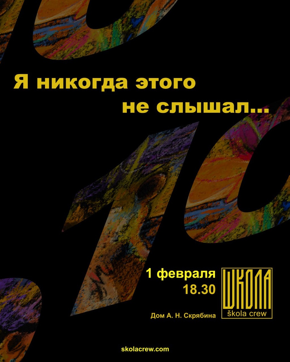 Дом Скрябина (Большой Николопесковский переулок, 11) В программе "Я никогда этого не слышал..." Сергей Прокофьев / Соната для виолончели и фортепиано Клод Дебюсси / Соната для скрипки и фортепиано Бенджамин Бриттен / Соната для виолончели и фортепиано Исполнители: Светлана Коновалова, скрипка Олеся Саблина, виолончель Александра Стефанова, фортепиано Художники: Никон Филиппов Валерия Санчило 💡