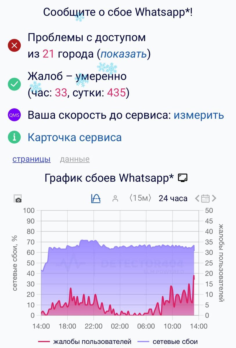 Пользователи жалуются, что сообщения совсем не отправляются. Сбой задел не только две столицы: проблемы фиксируют минимум в 20 городах — от Сочи и Казани до Красноярска. Люди в панике: у многих все важные контакты и переписки были только в WhatsApp. Ничего нового 🤡 CtrlAltDelights- подписаться