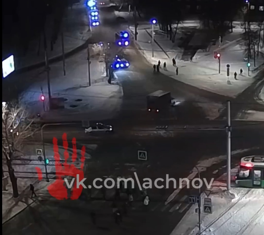 На видео момент аварии на пересечении улицы Сталеваров и Металлургов. Там водитель легковушки не пропустил пожарную машину с "мигалками" и врезался в нее.