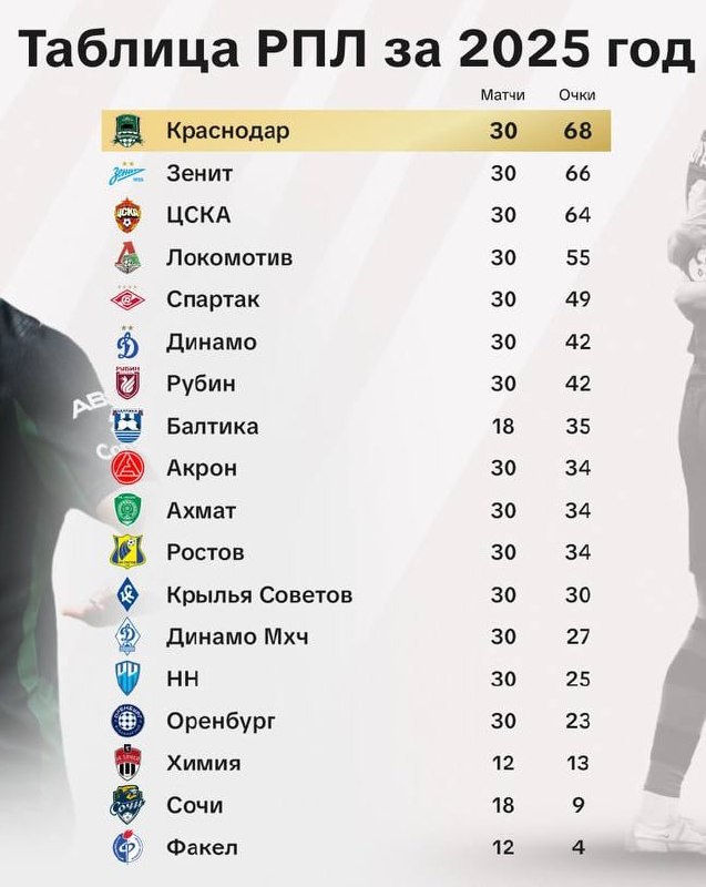 Таблица РПЛ за 2025 год. Угадайте, на каком мы месте.