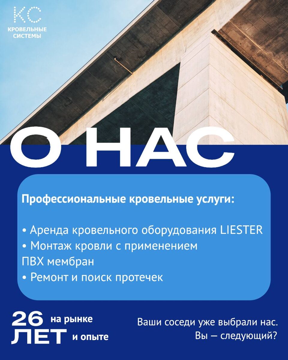 Наша команда выполняет кровельные работы по Центральному и Северо-Западному Федеральному округу. Мы осуществляем квалифицированный монтаж мембранной кровли коммерческих зданий и жилых домов уже более 26 лет. За 26 лет работы мы заслужили репутацию надёжного подрядчика и гарантируем долговечность вашей кровли. Обеспечиваем 100% защиту от любых погодных условий. В работе используем исключительно сертифицированные материалы от проверенных производителей и оригинальное швейцарское оборудование Leister. Мы предоставляем в аренду только оригинальные аппараты Leister – синоним швейцарского качества и надежности, проверенного временем. • Квалифицированный монтаж из ПВХ-мембран: Ваша крыша будет полностью герметичной, долговечной и надежной, выполненной по всем стандартам качества.