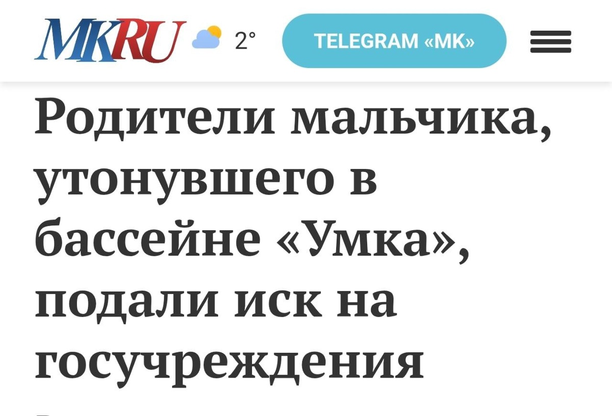 https://www.mk.ru/social/2025/12/22/roditeli-malchika-utonuvshego-v-basseyne-umka-podali-isk-na-gosuchrezhdeniya.html Как адвокат и представитель семьи Волковых, вынужден сообщить: мы с родителями так и не дождались встречных шагов от московских чиновников. 19 декабря 2025 года был подан иск в Головинский районный суд Москвы о взыскании компенсации морального и материального вреда. Представьте: вы приводите своего семилетнего сына на первое занятие в бассейн. Городской, проверенный, с дипломированными тренерами. Вы уходите спокойным – ваш ребёнок в безопасности, под присмотром профессионалов. Через час вам звонят и говорят, что ваш сын мёртв. Именно это случилось с семьёй Волковых 1 апреля 2023 года. 1 апреля 2023 года семилетний Михаил Волков пришёл на своё первое занятие по плаванию в муниципальный бассейн «Умка» в САО Москвы. Мальчик не умел плавать. Родителей не допустили к бортику. Инструктажа не провели. В бассейне, где дети впервые учатся плавать, не было спасателя. За без