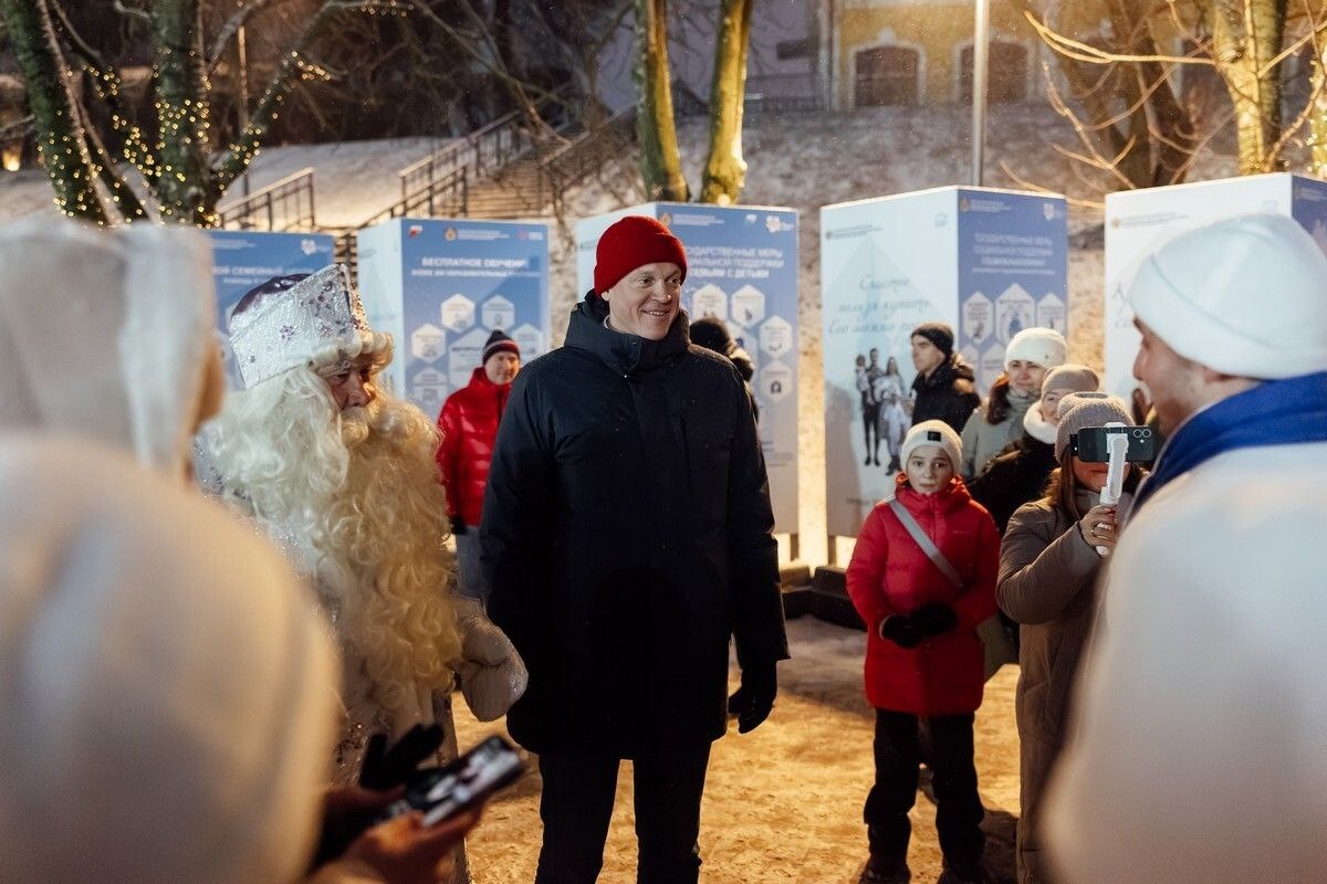 Рязани, являющийся ключевой локацией празднования. Во время визита он осмотрел функционирующие тематические зоны и пообщался с рязанцами и гостями города. В осмотре территории главу региона сопровождали Борис Ясинский, глава городской администрации, Роман Цуканов, руководитель аппарата губернатора и правительства Рязанской области, Виталий Шабанов, временно исполняющий обязанности министра спорта, и Дарья Стерлигова, заместитель министра культуры области. Павел Малков уделил внимание различным праздничным площадкам: он оценил работу катка и детских развлечений, побывал в Мастерской Деда Мороза, где дети могут бесплатно создавать новогодние подарки и украшения, а также ознакомился с продукцией местных производителей на ярмарке, включая изделия народных промыслов. В Тереме Деда Мороза на улице Почтовой, в рамках всероссийской акции «Ёлка желаний», губернатор Павел Малков выбрал шар с детской мечтой. Ему также продемонстрировали сувенирную продукцию с символами проекта "Рязань - Нового