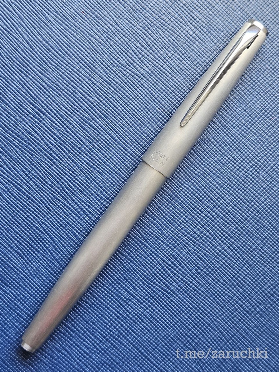Люблю ручки из титана. Они приятные на ощупь и не скользят. По корпусу у нас тут немножко Паркера, по клипу Монблана. Обработка поверхности очень выразительная, мелкое текстурирование. Мягко и приятно сидит в руке. Хорошо цепляется и не скользит. Сейчас уже выпускается в трех вариантах - глянцевая, матовая и текстурированая. Есть еще сторонние покрасы в голубой и розовый, думаю методом гальванизации. В руке держать и пользоваться очень приятно. Удобно, незаметно. С колпачком я так и не понял - то ли так было задумано, то ли у меня брак. Там есть усики, которые заходят за кольцо в колпачке. Но если вставить колпак только за усики, он болтается. Но его можно продвинуть чуть дальше и на трении о внутренний пластмассовый стакан уже будет держаться надежно. Я долгое время вставлял только до щелчка и удивлялся люфту. Но теперь получается как бы двух-ходовое надевание - сначала щелчок усиков, потом продавливание. Причем снимается очень легко, как бы за один раз. Перо здесь стальное с заг