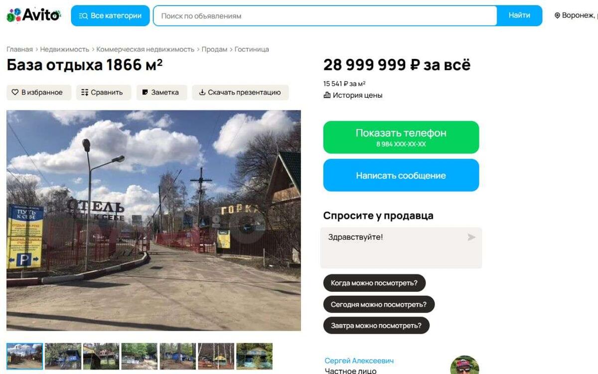 В Рамонском районе выставили на продажу базу отдыха «Горка», расположенную на берегу реки Воронеж. Об этом в понедельник, 22 декабря, со ссылкой на сайт объявлений «Авито» сообщило De Facto. По информации издания, объект коммерческой недвижимости оценили почти в 29 млн рублей. База отдыха расположена на участке площадью в 1,7 га. Речь идет о землях лесного фонда, которые находятся в долгосрочной аренде – соглашение истекает в 2060 году. В лот входит 41 здание – пять домиков из деревянных срубов, кирпичные столовая (451 кв. м) и душевые кабины, а также более 30 домиков каркасного типа. Общая площадь базы отдыха, которая работает преимущественно в теплое время года – конец весны, лето и начало осени, составляет 1866 кв. м. Продавец отмечает, что после завершения реконструкции объект сможет принимать постояльцев круглый год. Для удобства гостей оборудована удобная дорожная инфраструктура и пляжная зона. Кстати, базу отдыха «Горка» пытались продать еще летом 2023 года, причем тогда за нее
