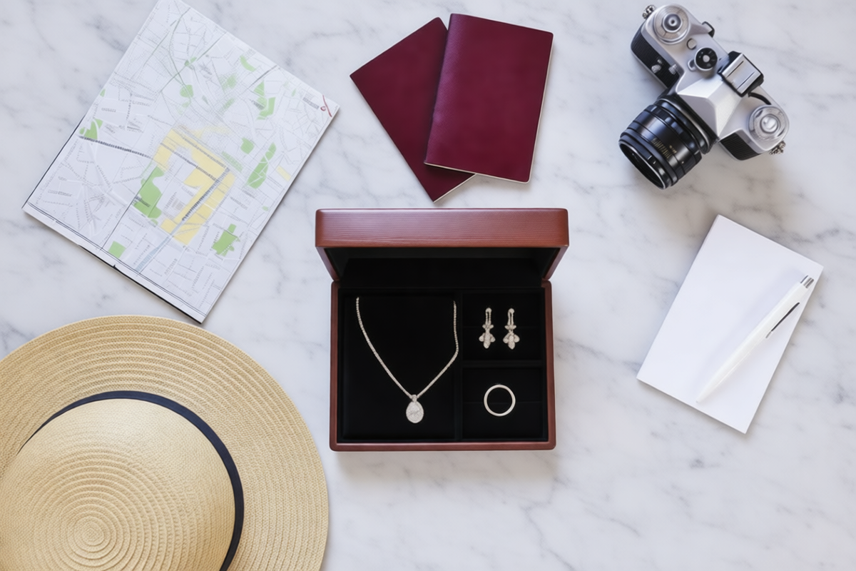 А еще — то самое сожаление: «зачем я это взяла?» или «почему не взяла вот это». С украшениями это случается чаще всего. Дома они кажутся универсальными, а в поездке вдруг оказываются неуместными, тяжелыми или слишком заметными. Поэтому минимализм в путешествиях — не про отказ от красоты, а про точность выбора. Этот гайд — о том, как взять с собой минимум украшений и не пожалеть ни разу. Лучше всего в поездках работают украшения-хамелеоны. Те, что спокойно смотрятся днем и не теряются вечером. Что это может быть: Проверьте украшение простым вопросом: Я надену его с платьем, джинсами и свитером? Если ответ «да» — оно подходит для дороги. В путешествии мы больше двигаемся, меняем ритм, быва