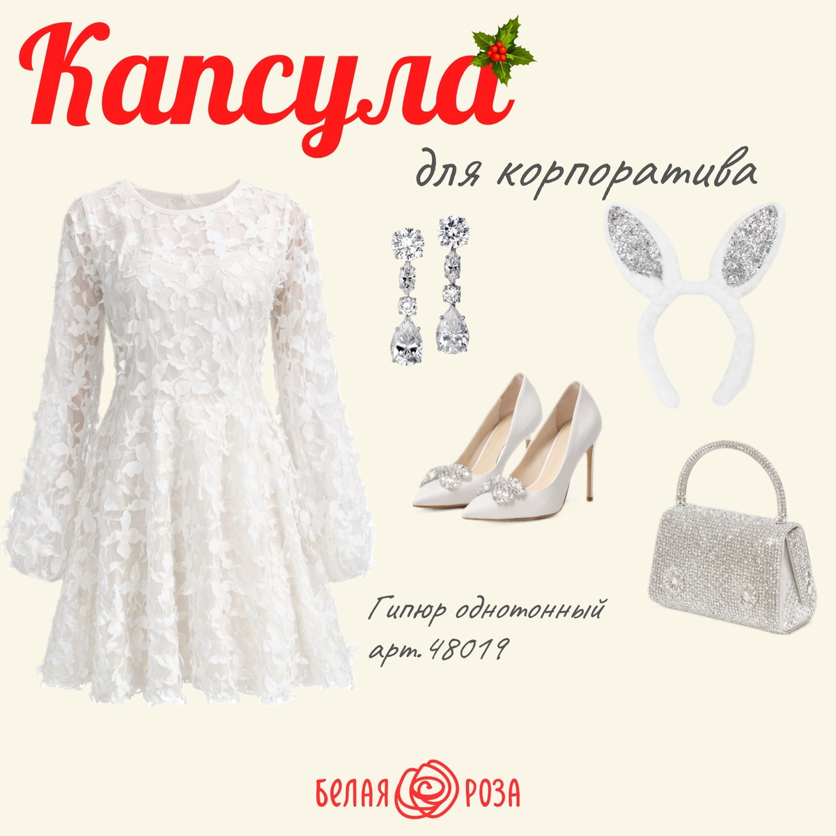 ? ✨ Когда хочется выглядеть празднично, стильно и уместно одновременно 🤍 🎄 Идеальная праздничная капсула — это: 🤍 Праздничное платье — лёгкое, изящное, притягивающее взгляды 👠 Туфли — аккуратные, подчёркивающие образ 👜 Мини-сумочка — как стильный акцент ✨ Аксессуары — блеск, который завершает образ И, конечно, главное в этом образе — платье 💫 Оно сшито из нашей новой ткани, созданной именно для особых случаев. 🤍 Гипюр однотонный • Артикул: 48019 • Цвет: белый • Состав: 100% полиэстер • Ширина: 150 см • Лёгкий, полупрозрачный, праздничный • Цена: 745 ₽/м ✨ Такой гипюр идеально подойдёт для платьев, топов и эффектных образов на корпоратив, вечеринку или новогодний вечер. 🤍🎄Ждём вас в магазине тканей и рукоделия «Белая Роза» Создавайте образы, в которых хочется сиять ✨