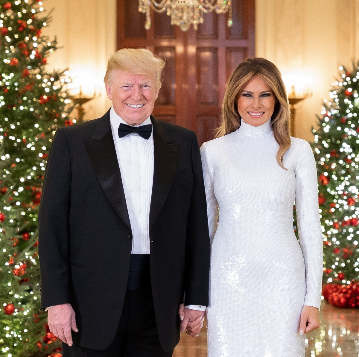 Мелания Трамп в белом платье с пайетками представила рождественское оформление Белого дома