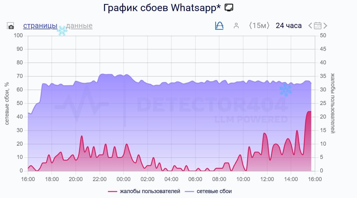 «Больше часа жду пока отправится сообщение, но оно не уходит. Оповещения тоже не появляются. Знакомые столкнулись с такой же проблемой», — рассказал нам подписчик из ХМАО. Сейчас больше всего жалоб на сбои в Республике Тыва и Москве. *WhatsApp — принадлежит компании Meta, которая признана экстремистской организацией и запрещена в РФ. Подписаться | Прислать новость | Дать «буст» | Мы в MAX